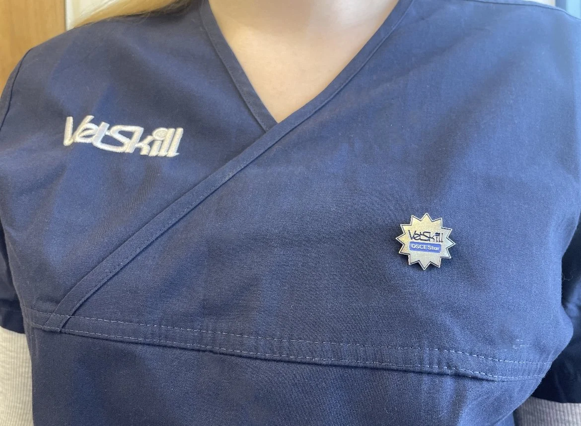 We acknowledge that a 12/12 OSCE Pass is a remarkable achievement so celebrate this success by issuing our ‘VetSkill OSCE Star’ badges (pictured below) and certificates (pictured above).